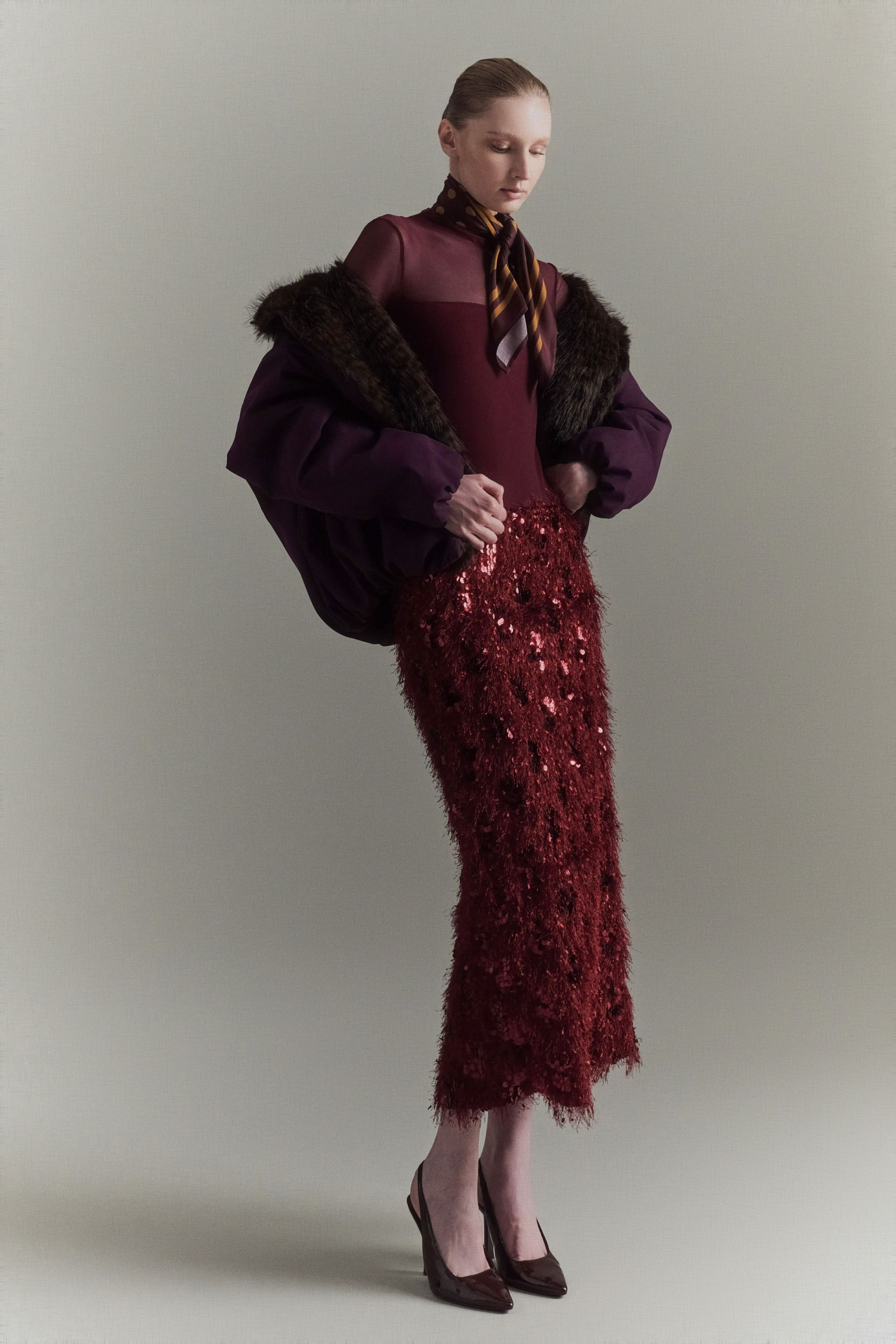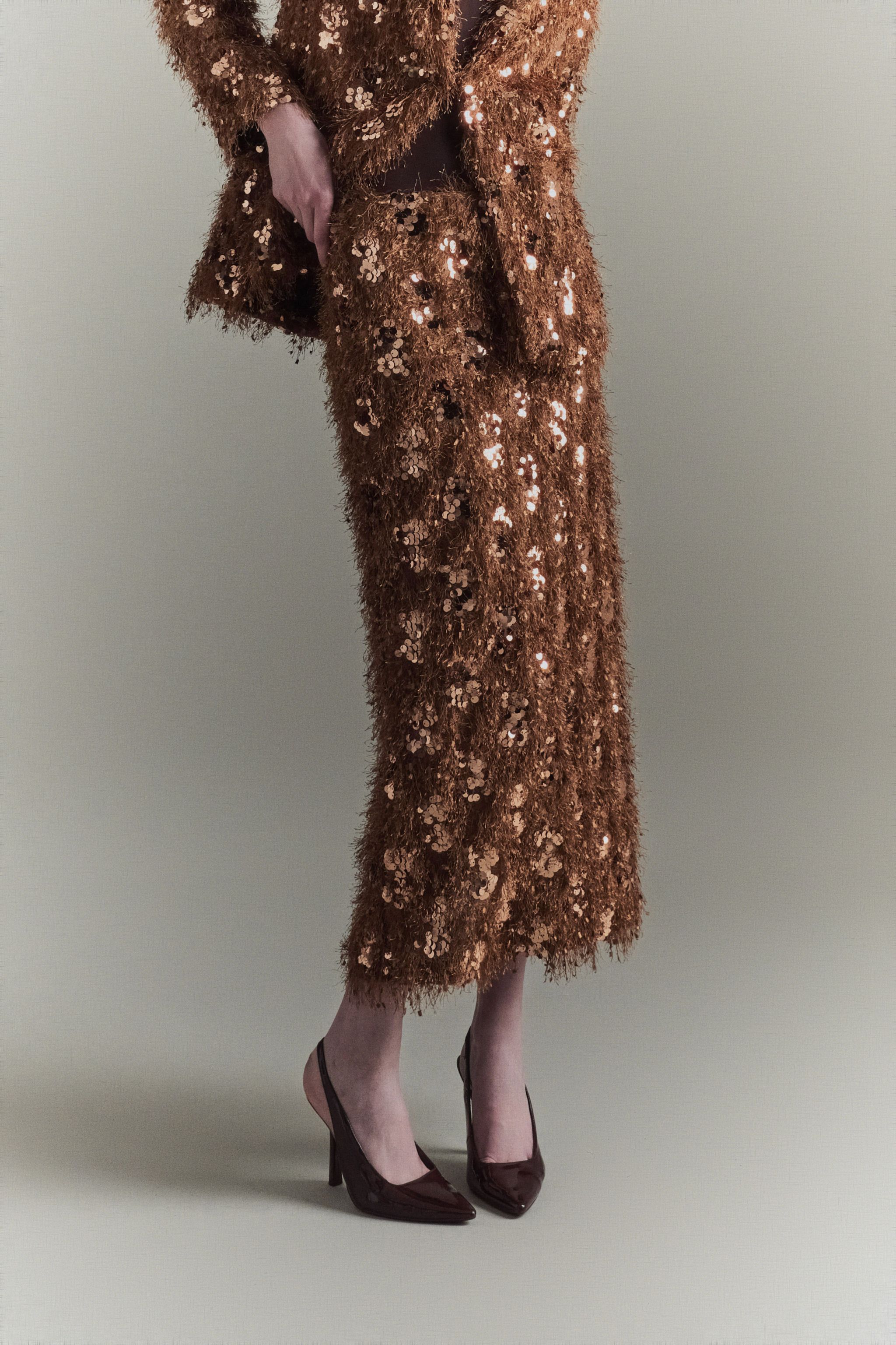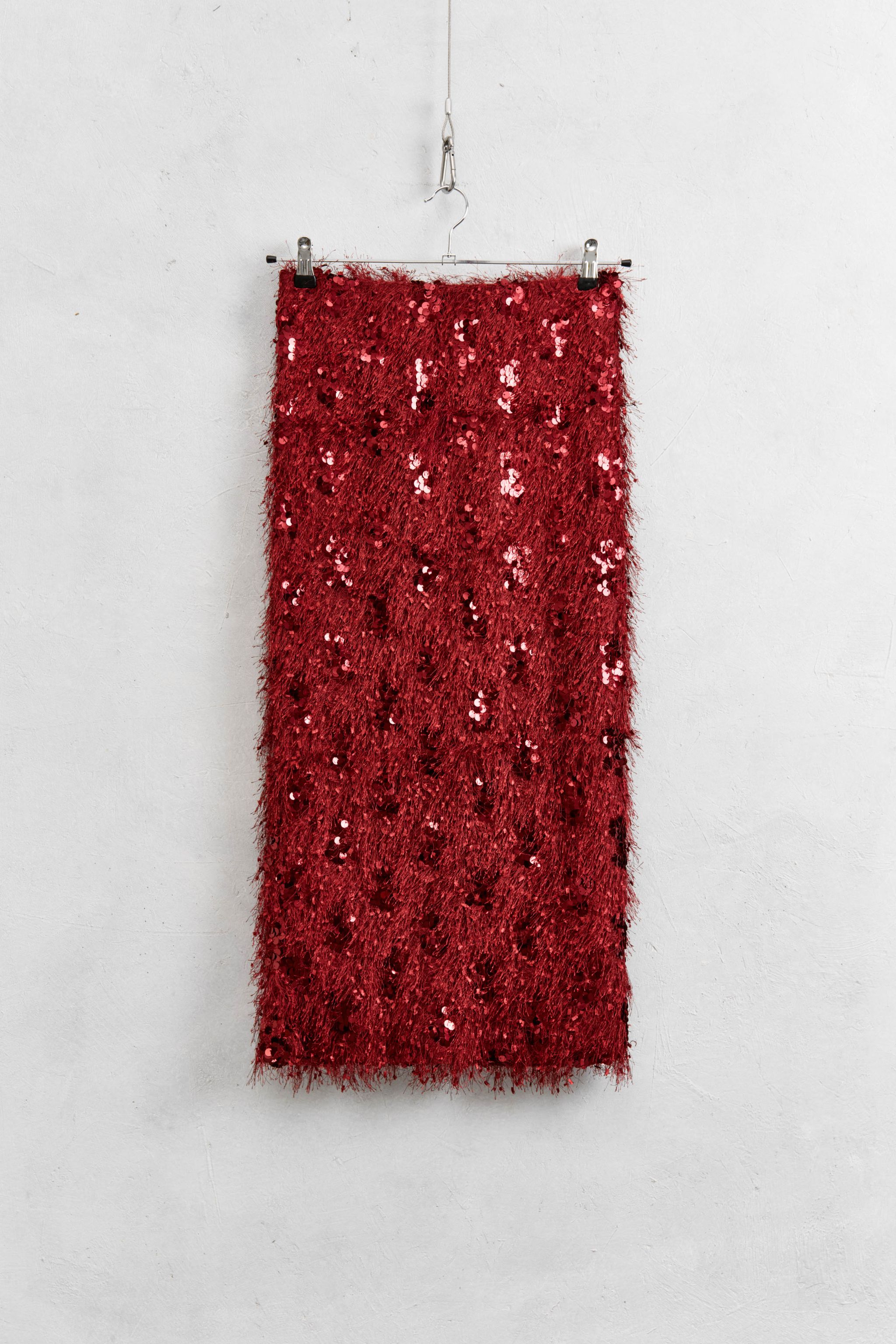 Tiesaus kirpimo sijonas. Elastinga juosmens juosta ir pamušalas viduje. Kirpimas nugaroje. Įprasto kirpimo.